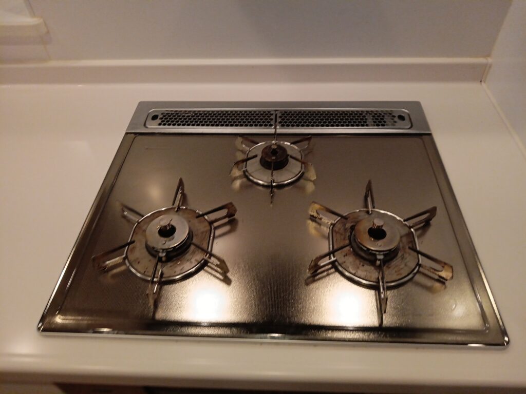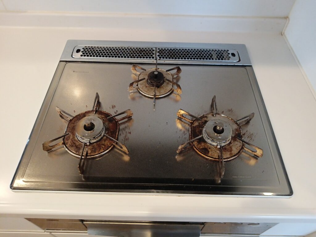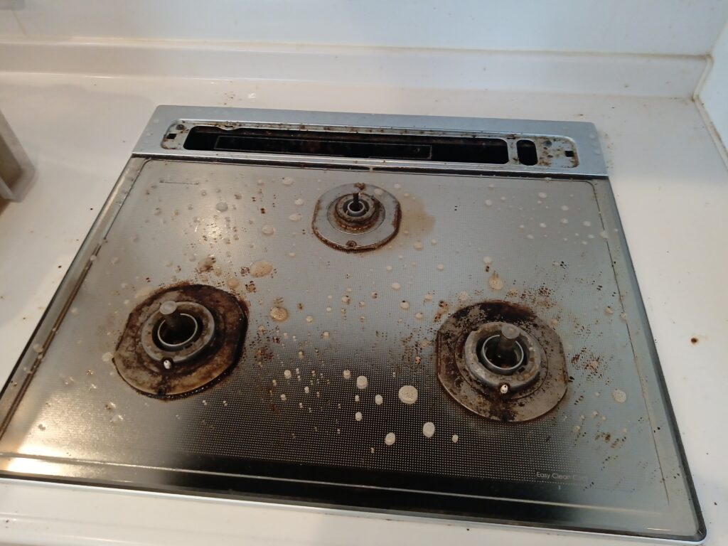 キッチンの清掃では、特に油汚れがたまりやすいレンジフードとグリルを重点的に行いました。